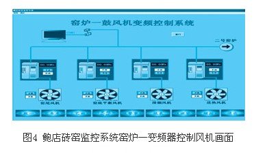 當用bcb製作控件時,隻要用bcb製作完相應功能的控件就可實現脫離bcb環境,作為(wei) 普通的ocx控件應用於(yu) 組態王,非常簡便。此方法彌補了組態王沒有相關(guan) 驅動程序,而無法實現應用組態王的缺陷,值得推廣應用。在兗(yan) 礦鮑店磚窯監控係統中,我們(men) 利用了bcb作為(wei) 後台間接實現組態王對變頻器的控製。其窯爐一鼓風機變頻控製監控畫麵如圖4所示。經現場調試運行後,所得反饋效果良好。#p#分頁標題#e#