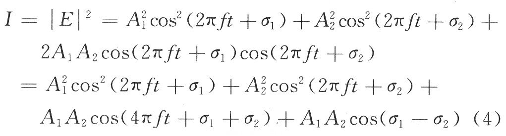 式中:A1和A2分別為(wei) 光波的振幅;σ1和σ2分別是光波的位相;當E1和E2滿足相幹條件時,其光波的合成複振幅E為(wei) :