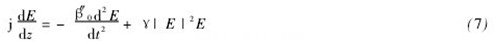 式中:E為(wei) 光脈衝(chong) 電場包絡;β″0為(wei) 二階群速度色散;γ為(wei) 光纖非線性參數。