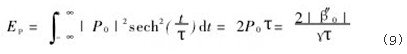 式中:P0為(wei) 一階光孤子的峰值功率,P0=|β″0|/γτ2; ks=π/4z0, z0為(wei) 孤子周期,z0=(π/2)(|β″0|/τ2),τ為(wei) 脈衝(chong) 寬度。可見,工作於(yu) 負色散的鎖模脈衝(chong) 表現出孤子特性,孤子能量Ep可以通過時域積分求得