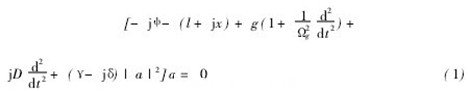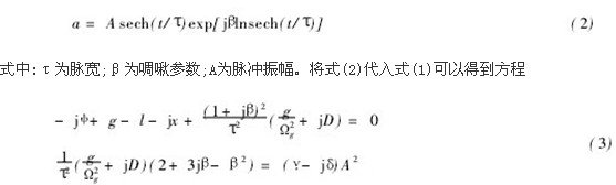 式中:l為(wei) 線性損耗;x為(wei) 相移;g為(wei) 增益;Ωg為(wei) 增益線寬;γ為(wei) 可飽和吸收係數;δ為(wei) 自相位調製;ψ為(wei) 頻移導致的相移。O.E.Martinez和R.L.Fork對方程(1)給出了精確解為(wei)