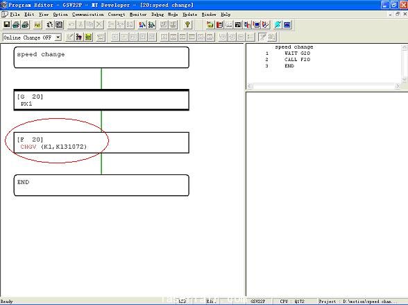 三菱Q係列運動控製器Q172CPU(N)/Q173CPU(N)在定位過程中來實現定位速度的改變有兩(liang) 種方式,一種是在PLC的順控程序中通過使用運動專(zhuan) 用PLC指令S(P).CHGV來改變指定軸的控製速度,另一種是在運動控製器的SFC程序中使用運動專(zhuan) 用功能CHGV來改變指定軸的定位速度,對於(yu) 前者,請參見運動控製器Q係列SFC編程手冊(ce) ,對於(yu) 後者詳述如下: