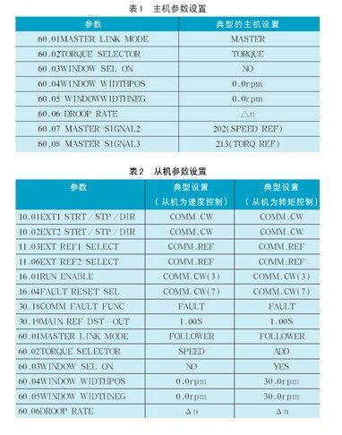 abb acs800係列變頻器主從(cong) 機參數設置如表1~2所示,具體(ti) 信息可參考文獻[2]。