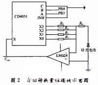 實現高精度的測量。一般通過控製輸入信號的衰減/放大倍數來實現。就光功率計而言,一般輸入信號都比較小,所以其量程切換基本上都是放大倍數的切換。在該係統中,量程自動轉換主要由多通道開關(guan) CD4051和集成運放LM324組成。兩(liang) 者連接圖如圖2所示。