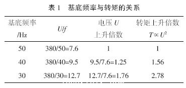 (2)為(wei) 什麽(me) 減小基底頻率提高起動轉矩是最有效的呢?具體(ti) 如表1 所列。