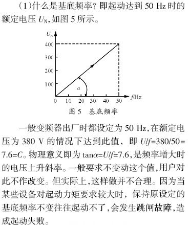 (6)有人擔心如下降基底為(wei) 30 Hz 時,電壓已達380 V。那麽(me) 正常工作有可能需要達50 Hz 時輸出頻率是否可達額定頻率50 Hz,回答是輸出頻率當然可以達到50 Hz。