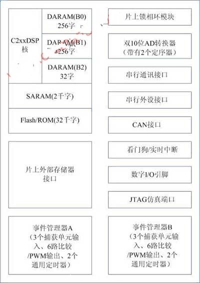 圖1 TMS320Lx240x係列DSP控製器總體(ti) 結構