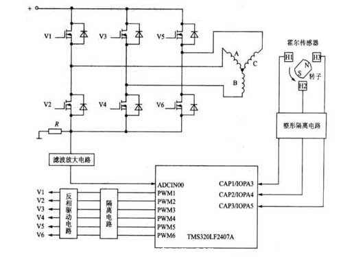 圖2 用TMS320LF2407A實現三相無刷直流電動機調速的控製和驅動