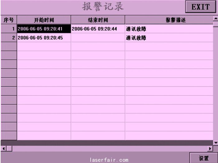 按下報警記錄按鈕後,可進入報警信息瀏覽表格,該表格主要用於(yu) 存儲(chu) 監控係統的故障報警情況。操作者還可通過輸入具體(ti) 時間來調出當時的係統故障記錄,並可將該記錄進行打印,如圖3所示。