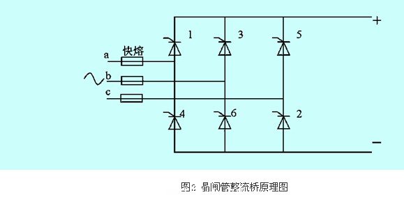 對降壓變壓器、晶閘管進行檢查,發現軟起動裝置整流橋1#晶閘管短路,整流橋原理圖如圖2所示。