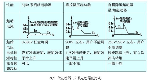 2.1 軟起動器與(yu) 傳(chuan) 統起動方式的比較