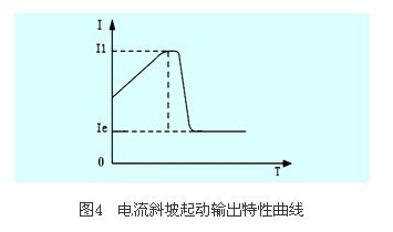 圖4為(wei) 電流斜坡起動模式的輸出電流波形,其中i1為(wei) 限流值,t1為(wei) 設置的時間值。電流斜坡起動模式具有較強的加速能力,適用於(yu) 兩(liang) 極電動機,也可在一定範圍內(nei) 縮短起動時間。