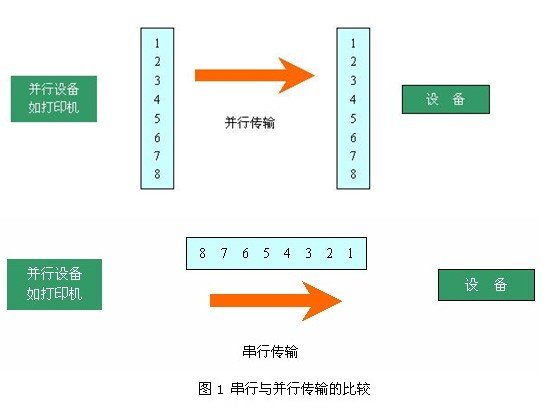 數據通訊中有兩(liang) 種類型的通信形式,即並行通信(Parallel Communication)和串行通信(Serial Communication)。例如,如果有8位數據需要傳(chuan) 送,那麽(me) 並行通信一次就可以完成8位的傳(chuan) 輸量;而串行一次隻能傳(chuan) 送1位。圖1表示了兩(liang) 種不同的通信模式,常用的串行通信也有兩(liang) 種,分別為(wei) RS-232和RS-485。