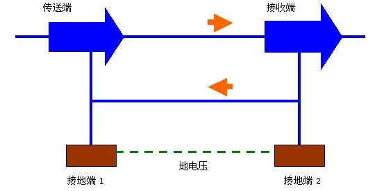 RS-232的信號準位是參考地線而言的,如圖2所示。相對於(yu) 參考接地端1傳(chuan) 輸端傳(chuan) 送數據;接收端則相對於(yu) 參考接地端2複現出傳(chuan) 送端的傳(chuan) 送的數據。
