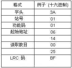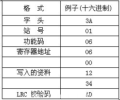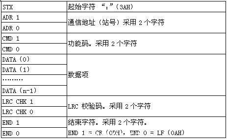 Modbus 分為(wei) ASCII和RTU兩(liang) 種,ASCII采用的格式和校驗相對簡單,本文采用ASCII格式,並僅(jin) 對使用的功能碼進行說明,更多的信息,請參看協議的詳細說明。
