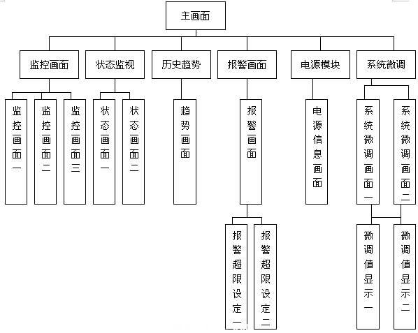 (1)係統功能設計:44個(ge) 數字量采集顯示,故障判斷;6個(ge) 電源模塊的數據采集顯示、顯示電源模塊的工作狀態並判斷報警;39路模擬量顯示、並判斷上下限報警;顯示報警畫麵、報警信息、當前報警、報警頻次;報警上下限設定;數據微調功能,並且顯示微調值;