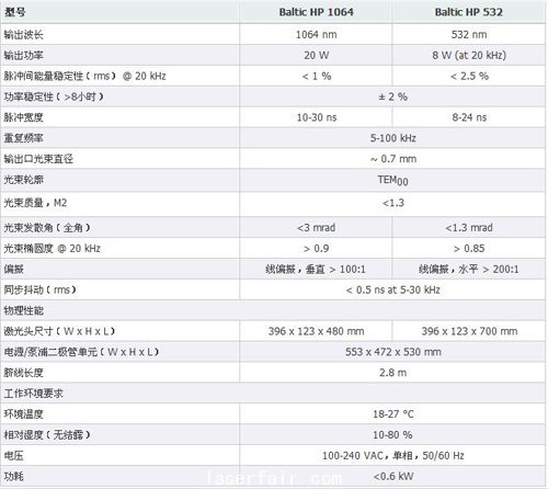 BalticHP係列工業(ye) 調Q全固態Nd:YVO4激光器提供高達20 W(@1064 nm)的輸出功率。高光束質量、短脈衝(chong) 寬度和高輸出功率使這種激光器成為(wei) 半導體(ti) 、太陽能和電子行業(ye) 中幾乎所有工程材料加工的高亮光源。短脈衝(chong) 寬度、高重複頻率(100 kHz)和堅固的設計使得這種激光器成為(wei) 很多材料加工極具吸引力的工具,這些材料包括聚合物、半導體(ti) 、複合材料和電介質。