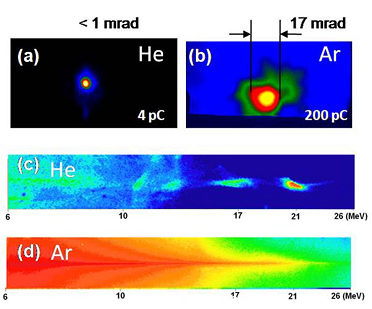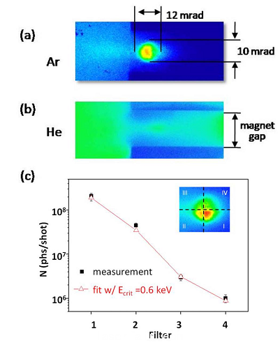圖1.實驗從(cong) 團簇(a)和氣體(ti) (b)獲得的Betatron輻射及能譜(c)