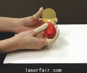 B.在使用拋光劑之後,用蒸餾水浸潤一根未使用的棉簽,然後用它輕輕擦拭光學元件的表麵。徹底蘸濕光學元件表麵,盡可能去除拋光殘渣。切勿使光學元件的表麵變得幹燥。這會(hui) 使去除拋光殘渣的工作變得更加困難。