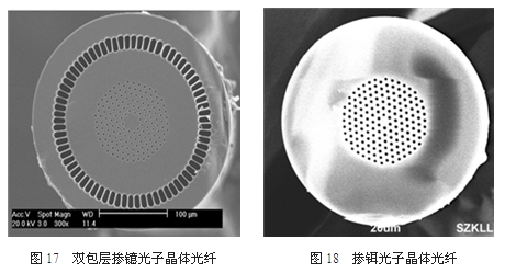 圖18為(wei) 烽火通信研製的摻鉺光子晶體(ti) 光纖,該光纖較常規摻鉺光纖具有更好的抗輻照特性,以及較好的增益特性。