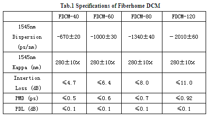 烽火通信科技股份有限公司采用自主知識產(chan) 權的PCVD裝備與(yu) 工藝技術,獨立開發出商用化的色散補償(chang) 光纖及光纖型補償(chang) 模塊,成功應用在國內(nei) 10G和40G通信係統中,並批量出口。表1為(wei) 其色散補償(chang) 光纖模塊的性能指標。
