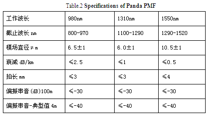 國際上,目前有各種類型的保偏光纖產(chan) 品進入市場,知名的保偏光纖製造公司有生產(chan) 領結型保偏光纖的FiberCore公司,有生產(chan) 橢圓包層保偏光纖的3M公司,以及生產(chan) 熊貓型保偏光纖的Fujikura,Corning ,Nufern、YOFC和OFS等公司。所有的這些公司生產(chan) 的保偏光纖都具有良好的雙折射性能。目前市場需求量為(wei) 5000km,市場容量在5000萬(wan) 元左右,國內(nei) 對保偏光纖的需求量逐年增大,表2為(wei) 典型的熊貓型保偏光纖的技術指標。