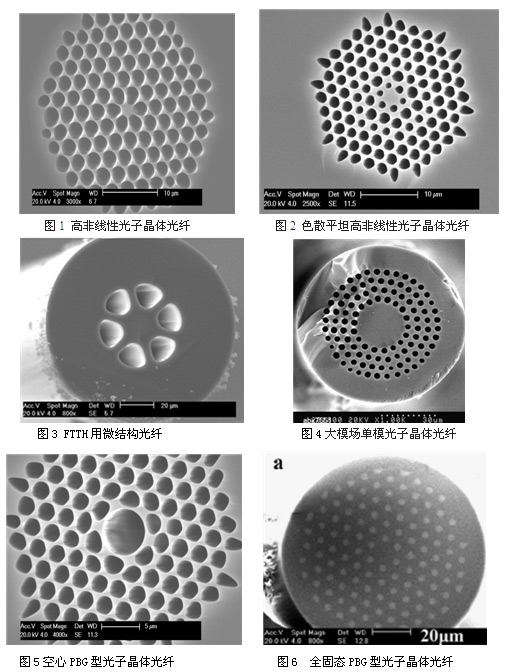 烽火通信科技股份有限公司在十一五國家重點基礎研究發展計劃973項目“微結構光纖結構設計及製備工藝的創新與(yu) 基礎研究”(2003CB314905)、高新技術產(chan) 業(ye) 化項目“863”計劃“光子晶體(ti) 光纖及器件的研製與(yu) 開發”(2007AA03Z447)、973計劃項目“微結構光纖的創新設計、精確製備及其標準化”(2010CB327606)的支撐下,從(cong) 微結構光纖設計、製備技術和應用技術等多方麵進行了係統深入的研究,取得了重大的科研成果。烽火通信已經初步形成了微結構光纖(光子晶體(ti) 光纖)的工藝技術與(yu) 設備控製技術,以及自主知識產(chan) 權的專(zhuan) 利技術,先後製造出如圖1~圖6所示的光子晶體(ti) 光纖,包括:高非線性光子晶體(ti) 光纖、色散平坦光子晶體(ti) 光纖、FTTH用微結構光纖、大模場單模光子晶體(ti) 光纖、空心PBG型光子晶體(ti) 光纖、全固態PBG型光子晶體(ti) 光纖,以及雙包層摻鐿光子晶體(ti) 光纖、摻鉺光子晶體(ti) 光纖等。