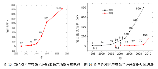 目前,烽火通信科技股份有限公司的單根摻鐿光纖成功實現1640W的1080nm的激光功率輸出(見圖15所示),這是國內(nei) 特種光纖的首次技術突破,達到了當前國際先進水平,促進了我國國防科學技術的進步。
