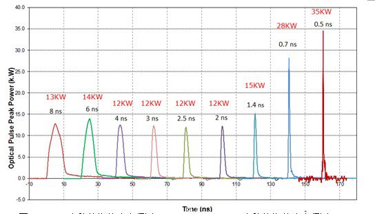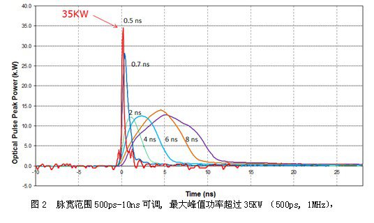 圖2 脈寬範圍500ps-10ns可調, 最大峰值功率超過35KW (500ps, 1MHz)