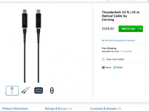 在今年召開的CES大展上康寧首次展示了名為(wei) “Thunderbolt光纖”的高性能傳(chuan) 輸介質,成為(wei) 眾(zhong) 多對傳(chuan) 輸性能有需求的高端消費者魂牽夢繞勢必要納入 囊中的終極產(chan) 品。在經過漫長的等待之後今天康寧終於(yu) 開始在Apple在線商場發售這款產(chan) 品,目前提供了33英寸/10米版本,售價(jia) 為(wei) $329.95,提供一年的質保,產(chan) 品將於(yu) 未來1到2個(ge) 月內(nei) 發貨。