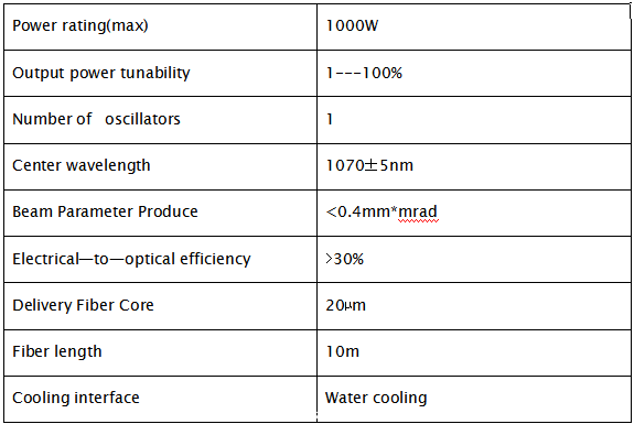 江蘇天元激光科技有限公司開發的這款1千瓦單模連續光纖激光器TY-1000輸出光纖為(wei) 20/400,輸出波長1070±5nm,可以實現激光能量從(cong) 1%-100%調節,電光轉換效率大於(yu) 30%,具有穩定可靠的機械結構,智能化數控係統,能在工業(ye) 環境中長期穩定運行。