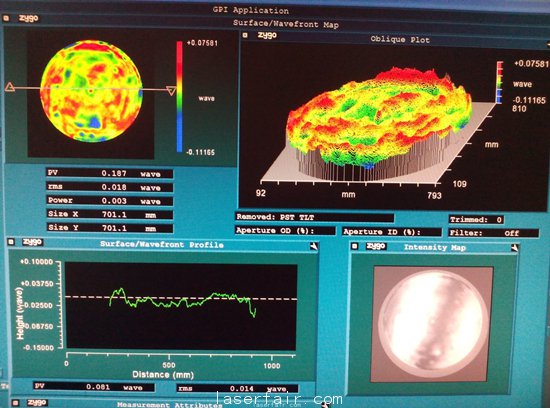 2014年3月25日,中科院長春光機所投資公司奧普光電加工完成BZPMJ700標準平麵鏡,麵型精度PV為(wei) 0.187λ、rms為(wei) 0.018λ、power為(wei) 0.003λ,這標誌著奧普公司在大口徑平麵鏡光學加工技術上取得重大突破。