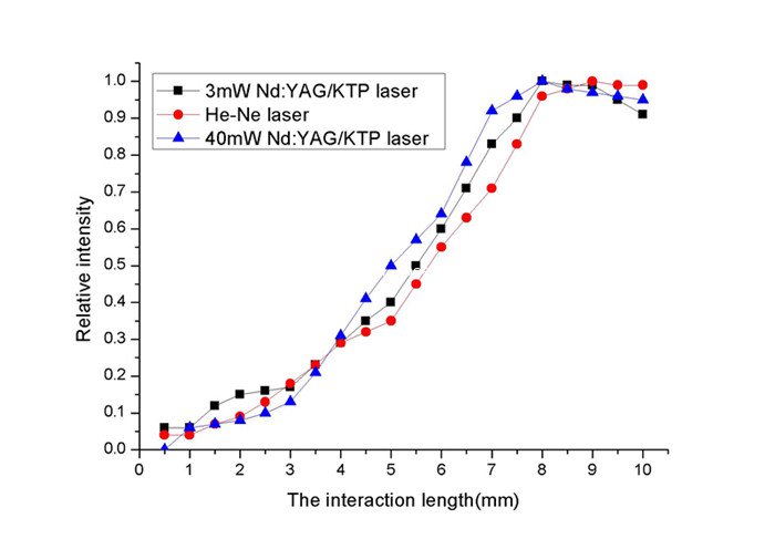 基於(yu) Raman-Nath機製的聲光相互作用長度比較短,利用這一特性可以製作體(ti) 積小的聲光Q開關(guan) ,從(cong) 而對某些希望縮短聲光開關(guan) 通光長度的情況(例如用Ge單晶做CO2激光器聲光開關(guan) )具有實用價(jia) 值。另一方麵,由於(yu) 聲光相互作用長度比較短,因而所需介質體(ti) 積小,換能器麵積小,這樣對聲波能量的要求也降低了。