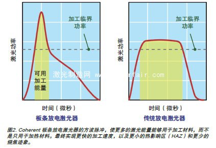 Coherent 從(cong) 最初研發相關(guan) 技術起就開始生產(chan) 板條放電CO2激光器。我們(men) 的DIAMOND激光器係列不斷發展,其最近的創新進一步提升了加工效果並降低了擁有成本。例如,板條放電激光器能夠產(chan) 生上升和下降較為(wei) 快速的脈衝(chong) 。這一脈衝(chong) 在DIAMOND激光器中進行了充分的優(you) 化,產(chan) 生了接近方波的脈衝(chong) 以及盡可能高的脈衝(chong) 頻率。這很重要,因為(wei) 方形脈衝(chong) 提供的總脈衝(chong) 能量大於(yu) 材料加工臨(lin) 界值,在降低HAZ的同時提高了加工效率和速度,實現優(you) 質邊緣切割。