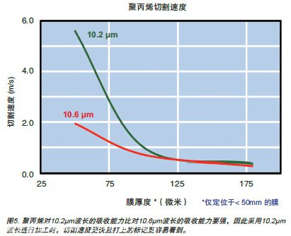 大部分用於(yu) 包裝應用的聚合物膜的紅外吸收光譜包括很多個(ge) 峰值。因此, 激光器波長中的微小偏移會(hui) 對吸收效率造成巨大的影響。而且,由於(yu) 包裝涉及的膜非常薄,通常隻吸收小部分的入射激光功率,因此吸收效率的小幅上升就可能會(hui) 大大提高加工速度和效率。因此,雖然采用傳(chuan) 統10.6μm波長的CO2激光器最常用於(yu) 包裝應用,但是經證實用於(yu) 某些塑料材料(尤其是聚丙烯和雙向拉伸聚丙烯 (BOPP)時,輸出為(wei) 10.2μm 的CO2激光器的加工速度更快且效果更勝一籌。同樣,用於(yu) 聚酰亞(ya) 胺(PI)、矽膠、三氯化聚乙烯(PET)、聚丙烯(PP)和聚苯乙烯(PS)時,輸出為(wei) 9.3μm的CO2激光器表現出更快的加工速度和更勝一籌的效果。Coherent生產(chan) 了可選擇10.6μm、10.2μm或9.3μm輸出的J係列CO2激光器, 專(zhuan) 門用於(yu) 滿足這些應用的需求。