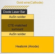 中國,西安,2014年6月19日 - 2014年6月,西安炬光科技有限公司宣布推出全金錫焊料封裝傳(chuan) 導冷卻半導體(ti) 激光器單Bar HCS02係列新品。該係列新品的封裝技術不僅(jin) 在submount與(yu) bar條之間采用金錫焊料,且在submount與(yu) heatsink之間也采用金錫焊料,真正實現了半導體(ti) 激光器的全金錫焊料封裝,產(chan) 品結構如圖1所示。該係列新品目前包括幾個(ge) 類別的產(chan) 品,分別為(wei) FL-HCS02-50(W)-808(nm),FL-HCS02-50(W)-825(nm),FL-HCS02-250(W)-808(nm)(QCW)和FL-HCS02-60(W)-9xx(nm)。