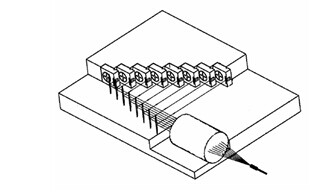 多單管結構是將多路分立的半導體(ti) 激光器發出的光束經過整形、重新排列、合束後耦合進入單根光纖,從(cong) 而可提高激光器輸出功率。由於(yu) 分立半導體(ti) 激光器芯片必須安裝在具有一定大小的熱沉上,如果直接將多個(ge) 半導體(ti) 激光器的輸出光束進行排列並聚焦耦合,通常由於(yu) 受到每個(ge) 芯片和其熱沉體(ti) 積的限製,合並光束體(ti) 積較大,很難獲得小芯徑高亮度的光纖耦合輸出。為(wei) 減小合並光束的空間體(ti) 積大小,必須采取一定的措施。為(wei) 此,凱普林自主研發的多單管耦合結構采用階梯熱沉、聚焦透鏡、耦合光纖以及獨特的安裝方式,光路設計簡化了結構的複雜性,減小了組件的體(ti) 積,大大提高了半導體(ti) 激光器輸出的功率,同時保證了耦合點的合理工作溫度,如圖1所示。