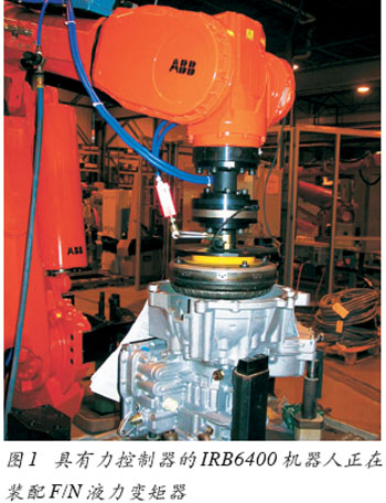 這項技術最初是在IRB4400 和IRB6400機器人上進行試驗的,其有效負載範圍為(wei) 30~200kg,用於(yu) 裝配汽車動力總成的不同零件。這些工作是比較複雜的,其中包括向前插入離合器的盤殼和F/N液力變矩器的裝配(見圖1)。所有試驗都一致證明了這兩(liang) 款機器人在循環時間、可接受的插入力、可靠性和便於(yu) 編程等方麵具有優(you) 異的性能。