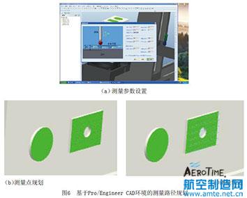 當進行複雜測量時,則編程人員需要對CAD係統進行二次開發,根據基本測量原理在CAD環境中進行人機交互測量路徑規劃和編程,圖6為(wei) 哈爾濱工業(ye) 大學基於(yu) Pro/Engineer CAD環境進行二次開發進行人機交互所規劃的測量點和測量路徑。