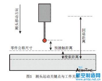 為(wei) 使數控機床能夠準確、高效、快速地完成每一次的在線測量,在一次測量任務中需多次測量觸發。根據測頭在一次測量過程中運動,需設定3種距離[15],如圖5所示。