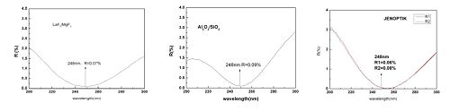 圖1. 兩種材料組合製備的248nm增透膜的光譜曲線