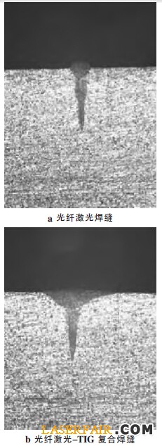圖5 光纖激光與光纖激光-TIG 複合焊的金相圖對比