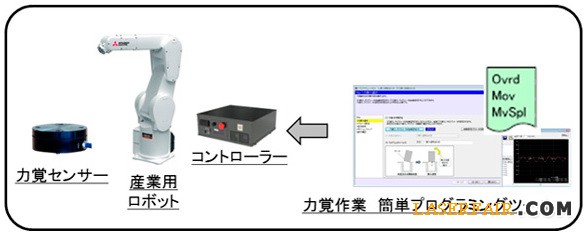 該應用程序包由垂直多關(guan) 節機器人“RV-2F”係列及“RV-4/7F”係列(配管內(nei) 裝規格品)、控製器、“4F-FS001-W200”(集力傳(chuan) 感器、接口單元及電纜類為(wei) 一體(ti) )以及力覺應用軟件“RT Toolbox2”附加用專(zhuan) 用工具構成。該應用程序包的目標客戶不僅(jin) 包括初次使用機器人的企業(ye) ,還包括已經熟練使用機器人的係統集成公司。