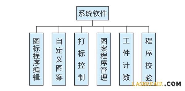 係統軟件包括用戶圖標編輯、用戶自定義圖案庫生成、打標計算及控製、圖標程序管理、工件計數、程序校驗等,如圖3所示。本文對如何用單片機語言編寫係統軟件不做贅述,主要對前三種功能的實現方法進行討論。