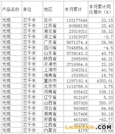 根據中商產(chan) 業(ye) 研究院數據顯示:2015年1-5月我國累計生產(chan) 光纜1.33億(yi) 芯公裏,同比增長23.15%。 其中江蘇省累計生產(chan) 光纜量達
