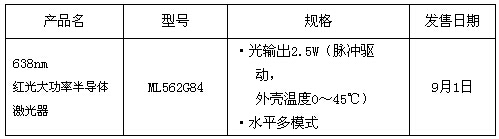 三菱電機株式會(hui) 社將於(yu) 9月1日開始發售一款使用脈衝(chong) 光可作為(wei) 投影儀(yi) 光源的紅色大功率半導體(ti) 激光器ML562G84,該激光器可發出波長