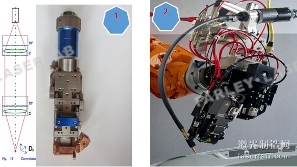 普通的激光切割頭,附帶吹氣嘴,采用高壓能將激光熔化的材料吹除,從(cong) 而形成切縫。目前汽車廠主流使用的激光釺焊頭,其附帶激光自動聚集功能,從(cong) 而更加有利於(yu) 激光加工的穩定性。掃描激光頭,能利用鏡片角度的轉動和位置的移動,保證激光作用於(yu) 工件的光斑大小不變,而且通過精確的控製,在激光頭姿態不改變的前提下,能夠實現圓形,直線段,C型等結構的焊縫結構。