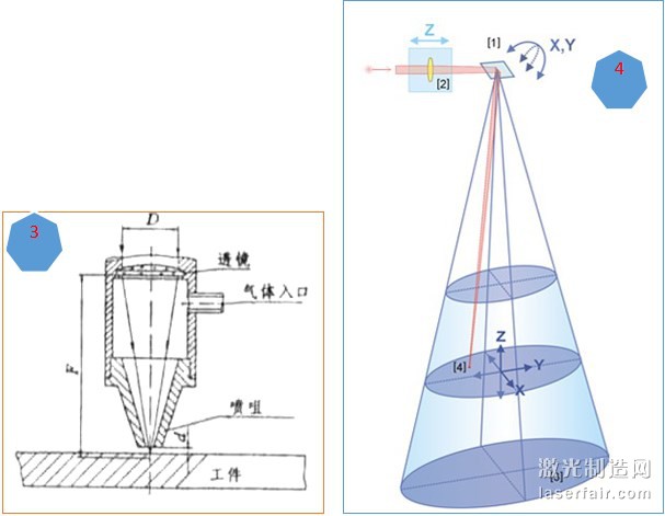 1 激光焊接頭;2 激光釺焊頭;3 激光切割頭;4 激光掃描焊接頭光束原理