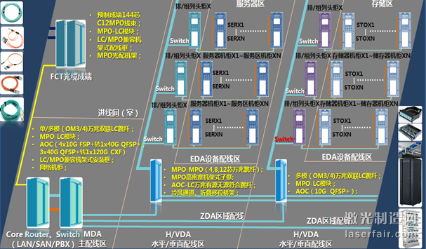雲承載IDC建設方案 地質與氣候狀況評估、建築美學理念、基礎加固與櫃基分離抗震設計;階梯配電、係統容災與綠色能耗管控理念;數據承載吞吐量能仿真設計、物理空間冗餘排布優化;傳統、密集、光電一體化連接設計;IDC故障定位、位置導引、智慧巡視、無人值守。雲係統互聯方案 ‘雲互聯’ODN網絡新架構:‘雲’‘管’‘端’,基於互聯網絡架構下的雲內連接、管間連接、端麵連接整體解決方案。雲計算中心整體布線方案 全麵涵蓋萬兆DAC直連電纜、多通道密集型插拔式MPO、光電集成有源光纜AOC,麵向未來電-光演進的連接重構靈動理念,同時基於MCF(多芯光纖)連接波導預研方案布局下一代數據中心連接係統。