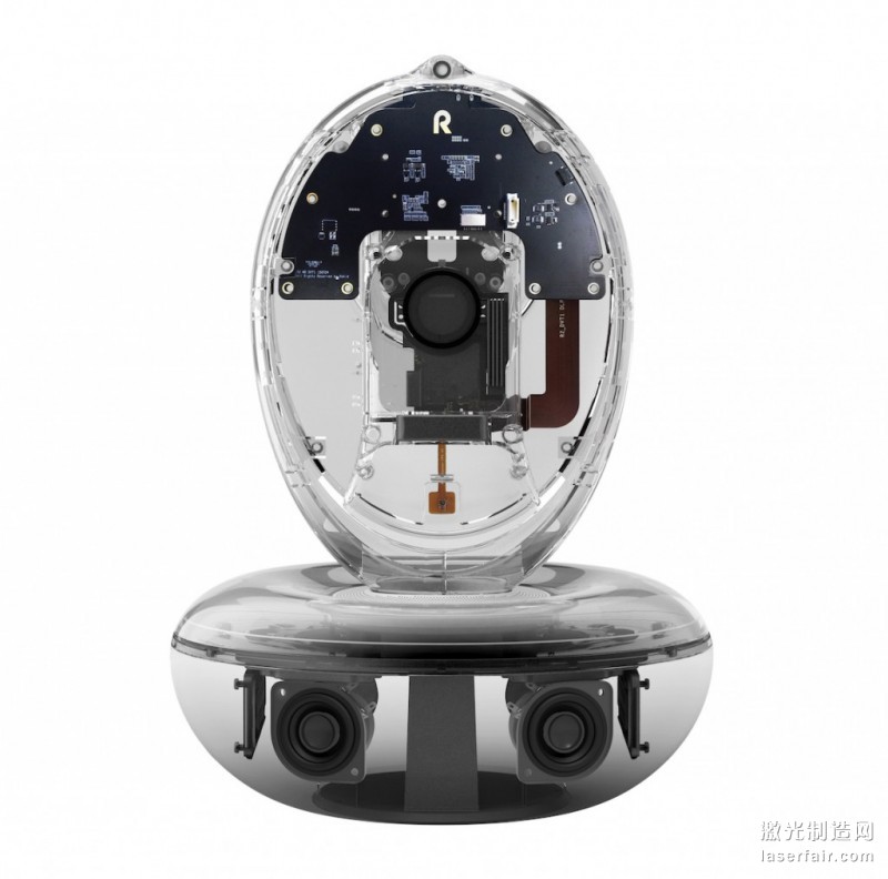 據了解,Rokid 的名字由來是這樣的:Rokid=“Robot”+“Kid”,意為產品本身具有生命感會成長學習。外觀上,Rokid 使用了高曲率的非球麵殼體作為顯像界麵,其中間是全向型陣列的 8 顆數字麥克風,下方為一個鋁合金箱體全向型音箱,最上方是它的 1200 萬像素的攝像頭。
